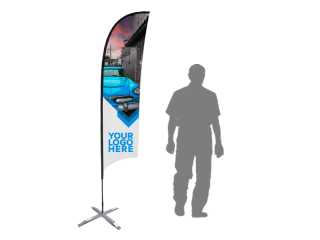 Our Sunblade flag is part of our custom printed flags collection that is a simple and affordable solution for effective branding. This popular feather shaped flag is not only simple to set up without tools, but also light & conveniently transportable. Larger sizes are available to give you extra graphic & messaging space. The poles are made from premium fiberglass that are much more flexible and wind resistant than the aluminum poles found in the market. Strong and flexible, your flag poles will last longer. We use only the top quality polyester and high resolution printing techniques so that logos and designs visibly stand out from any location. Fully printed it can be customized with any design, color or logo. Our meticulous stitching technique gives your flag a seamless sewing presentation. To easily store and carry your flag a free flag carrying bag is included.